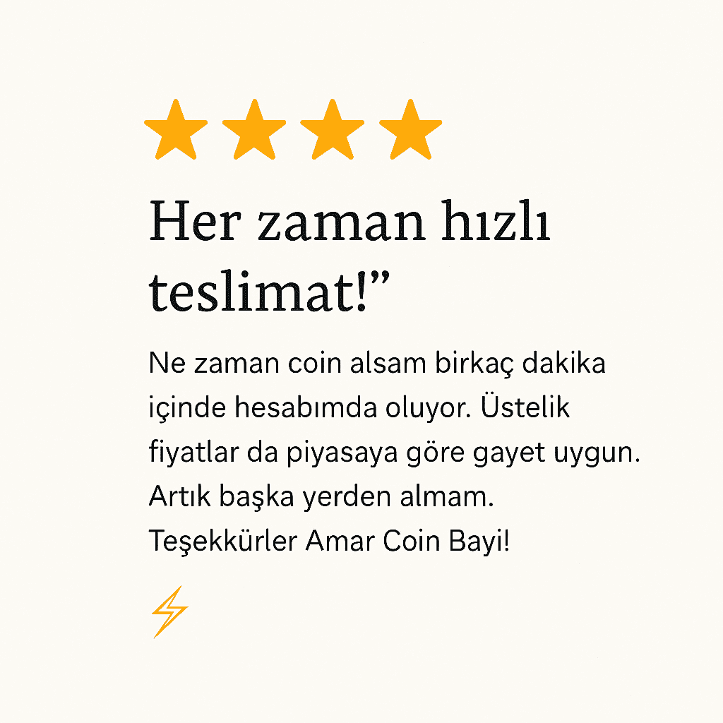 Ne zaman coin alsam birkaç dakika içinde hesabımda oluyor. Üstelik fiyatlar da piyasaya göre gayet uygun. Artık başka yerden almam. Teşekkürler Amar Coin Bayi! ⚡