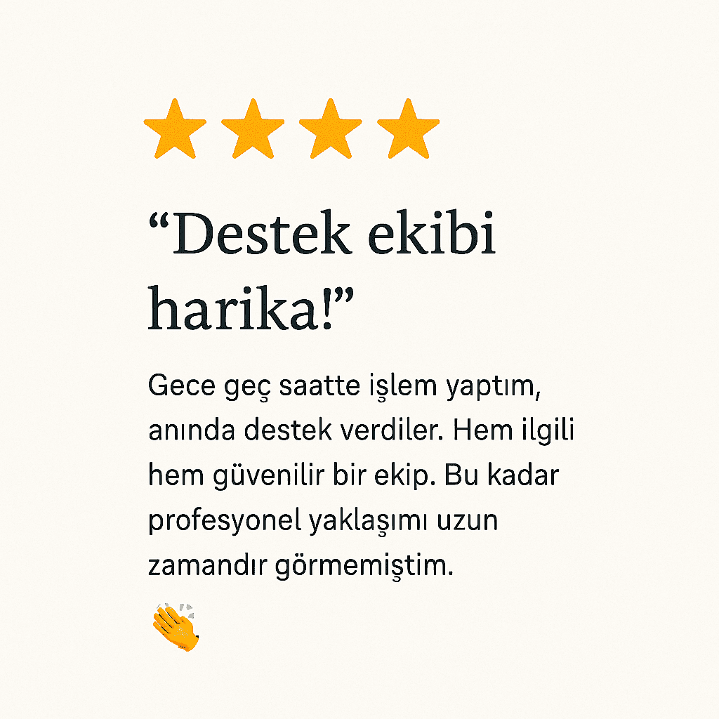 Gece geç saatte işlem yaptım, anında destek verdiler. Hem ilgili hem güvenilir bir ekip. Bu kadar profesyonel yaklaşımı uzun zamandır görmemiştim. 👏